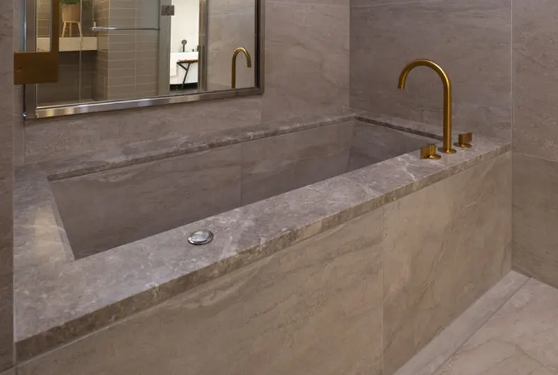 | 施工方法 | 工場で特注製造されたパーツを現場で組み立てる。デザインやサイズを自由にカスタマイズ可能。 | 防水性・断熱性に優れたウェディボードを下地材として使用し、仕上げを行う。曲面加工も可能でデザインの自由度が高い。 | 現場でイチから造作。防水処理後、モルタルやコンクリートで床・壁を形成し、タイルなどで仕上げる。 |